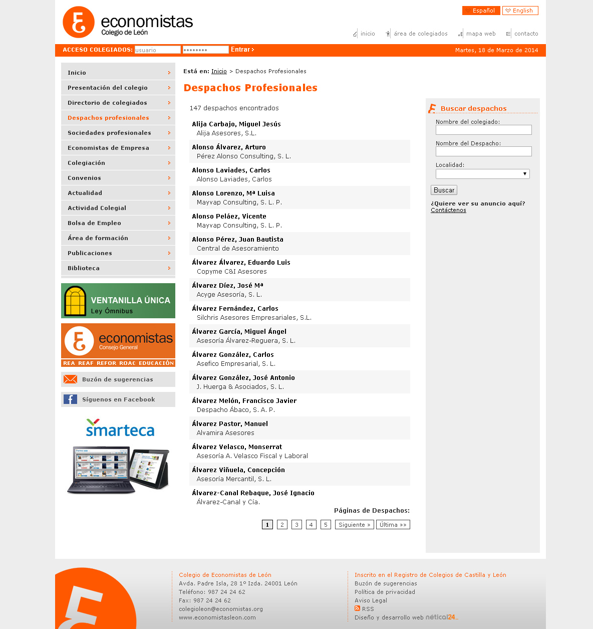 Los contenidos y las utilidades de la página web que ha construido Netical24 para el Colegio de Economistas de León, responden perfectamente a todas nuestras necesidades de comunicacion. Un trabajo muy bien hecho, y no lo decimos sólo nosotros sino tambíen todos los colegiados que visitan a diario nuestra página.