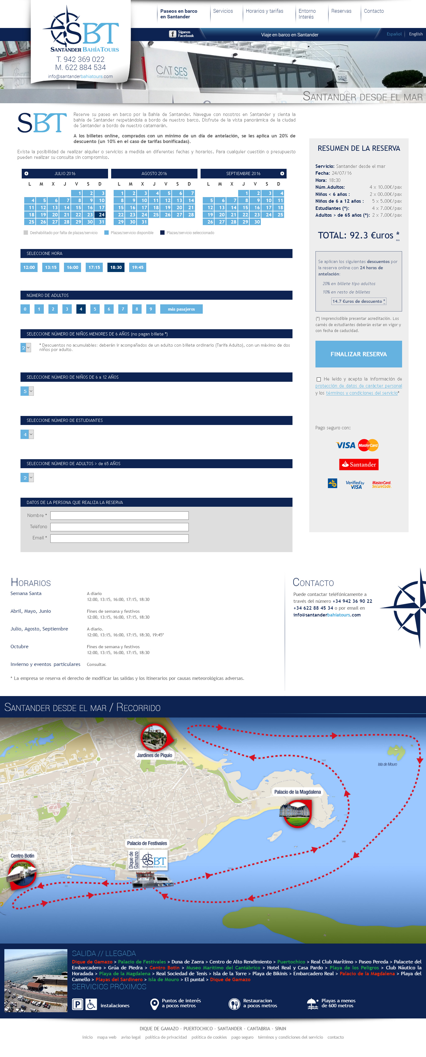 La empresa de transportes marítimos Santander Bahía Tours de Cantabria tenía la necesidad de crear su página web e implementar la administración, gestión y centralización de su sistema de reservas online y en punto de venta (taquilla). Entre otros, los servicios encargados a Nétical fueron: